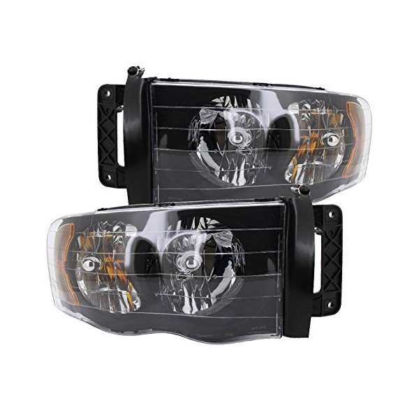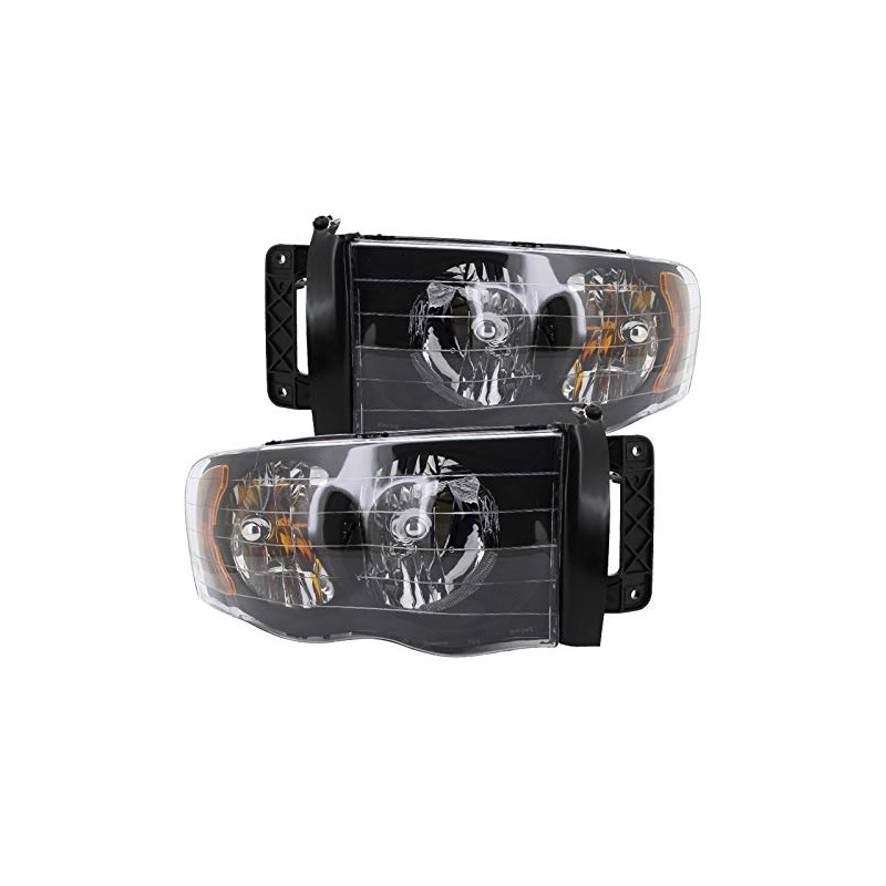 Spec-D Tuning Black Headlights Compatible with Dodge Ram 1500 2500 3500 2002-2005 L+R Pair Head Light Lamp Assembly