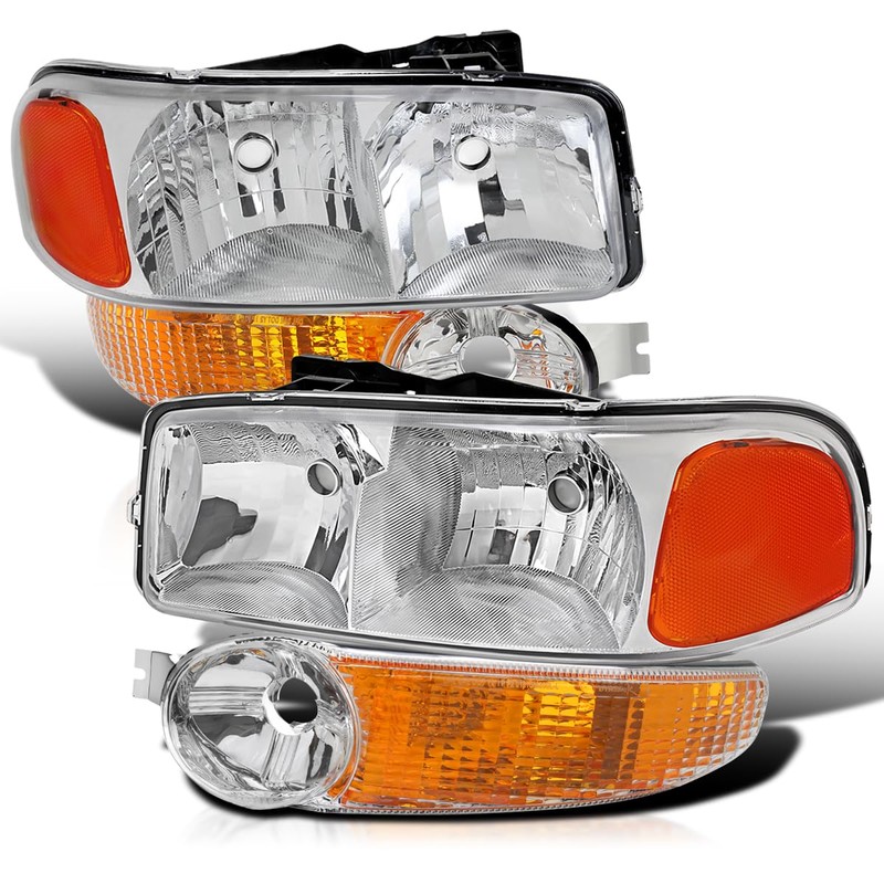 Spec-D Tuning Chrome Headlights + Bumper Lamps Compatible with 2000-2006 GMC ...