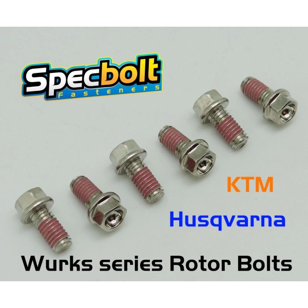 Includes the following items: 6 - M6x12 grade 10.9 hardened KTM GasGas Husqvarna Husaberg Wurks series brake rotor bolts with thread lock compound. (Compatible with KTM part 59009062013 and 0015060120) Enough for one rotor