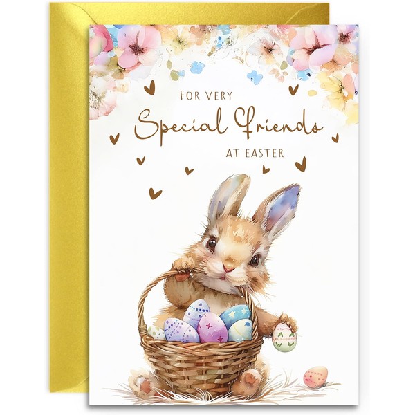 Special Friends Easter Card - Bunny with Easter Eggs Design - A5 Size with Gold Envelope