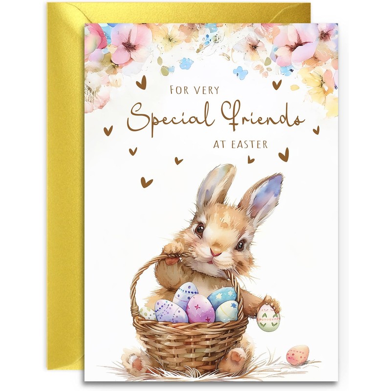 - CHARMING SPECIAL FRIENDS EASTER CARD ⭐ Delightful watercolour illustration featuring an adorable bunny holding a woven basket filled with beautifully decorated Easter eggs⭐ Click the second image for the text inside the card.