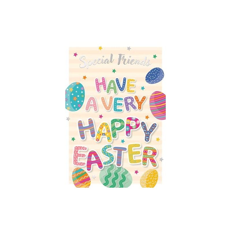 - Special Friends Easter Greetings Card With Envelope - Coloured Eggs and Writing with Silver Foil Finish