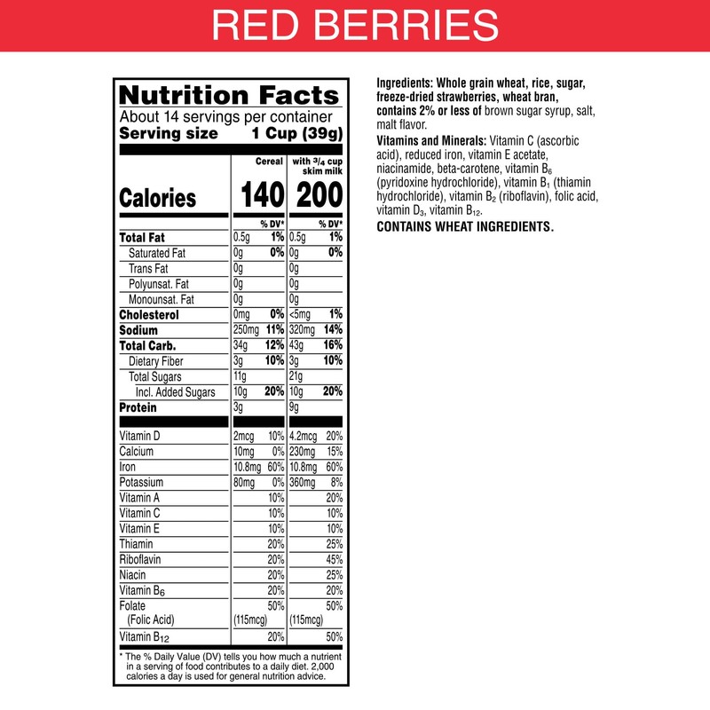 - Includes 1, 19.2oz giant-size box of ready-to-eat Kellogg's Special K Red Berries cereal; Packaged for freshness and great taste