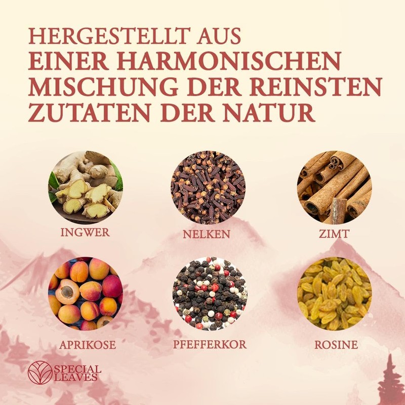 - Authentische Qualität: Unsere Mischung wird aus hochwertigen Zutaten hergestellt und sorgt für ein intensives Aroma. Die durchdachte Komposition vereint traditionelle und moderne Teekultur für einen besonderen Genussmoment.