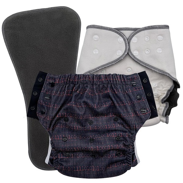 Special Needs Big Kids' Protective Briefs: Nighttime Cloth Diaper Set for Incontinence & Bedwetting, Age 6-16 Years (Coder, Junior 3)