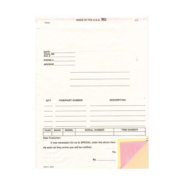 Special Parts Order Forms - Form SPO-4 / DSA-115-4