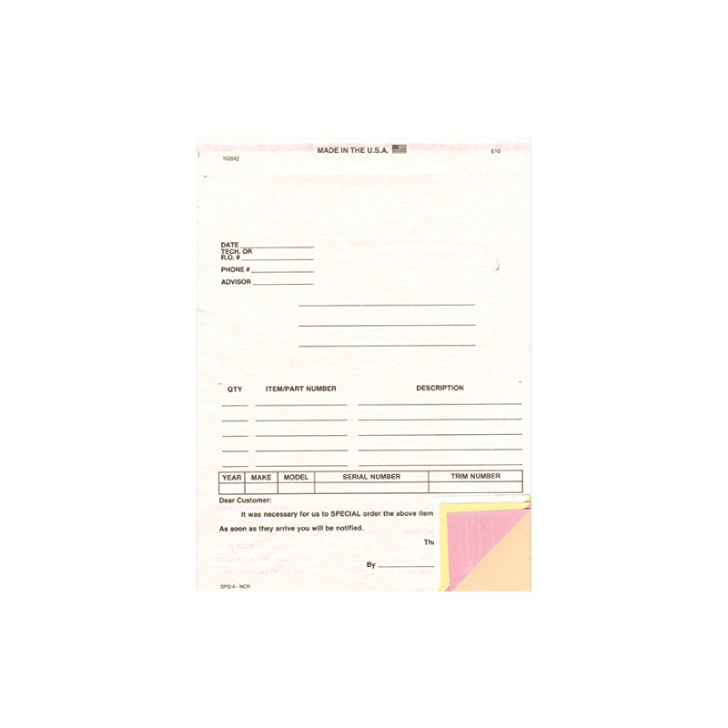 - Carbonless - White, Canary, Pink, Manila Tag