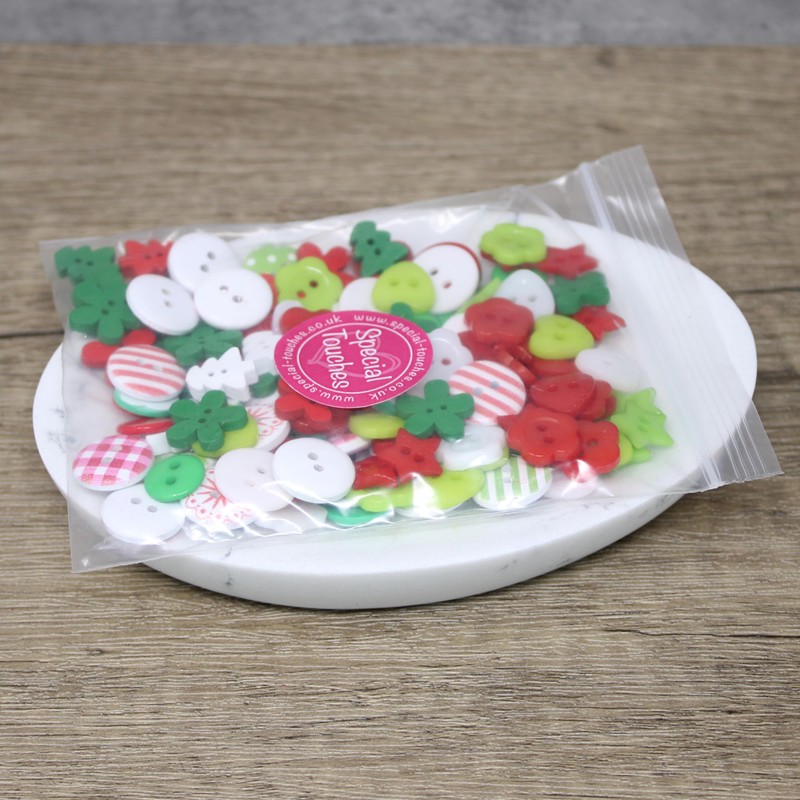 Special Touches 150pcs Xmas Mix Wooden, Acrylic & Resin Buttons - Festive Embellishments for Christmas Holiday Cardmaking