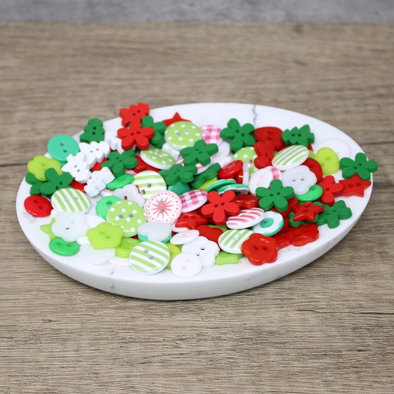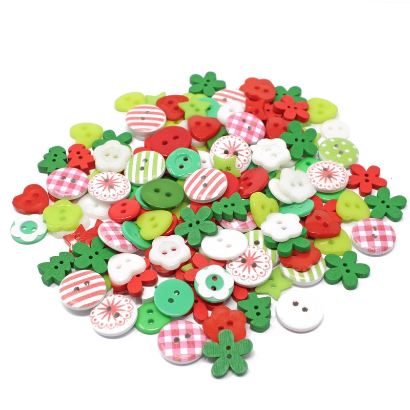 Special Touches 150pcs Xmas Mix Wooden, Acrylic & Resin Buttons - Festive Embellishments for Christmas Holiday Cardmaking