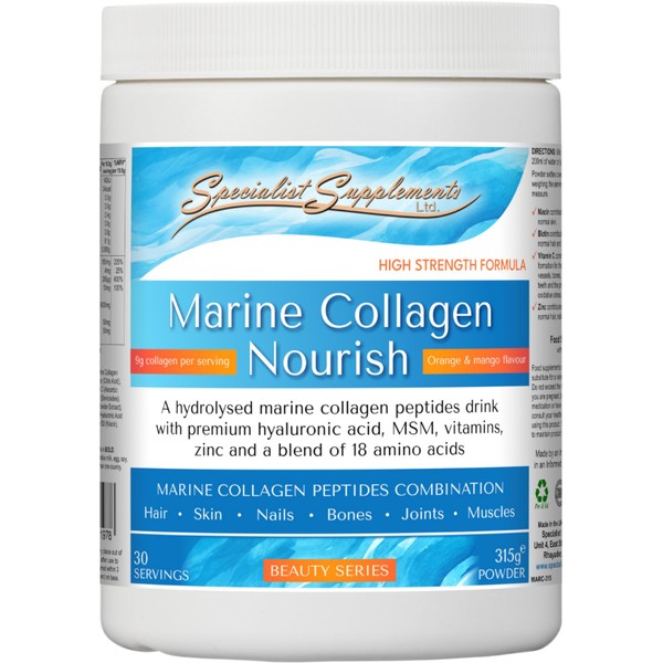 Specialist Supplements Marine Collagen Nourish (Orange & Mango Flavour) Drink Mix, 315g Powder