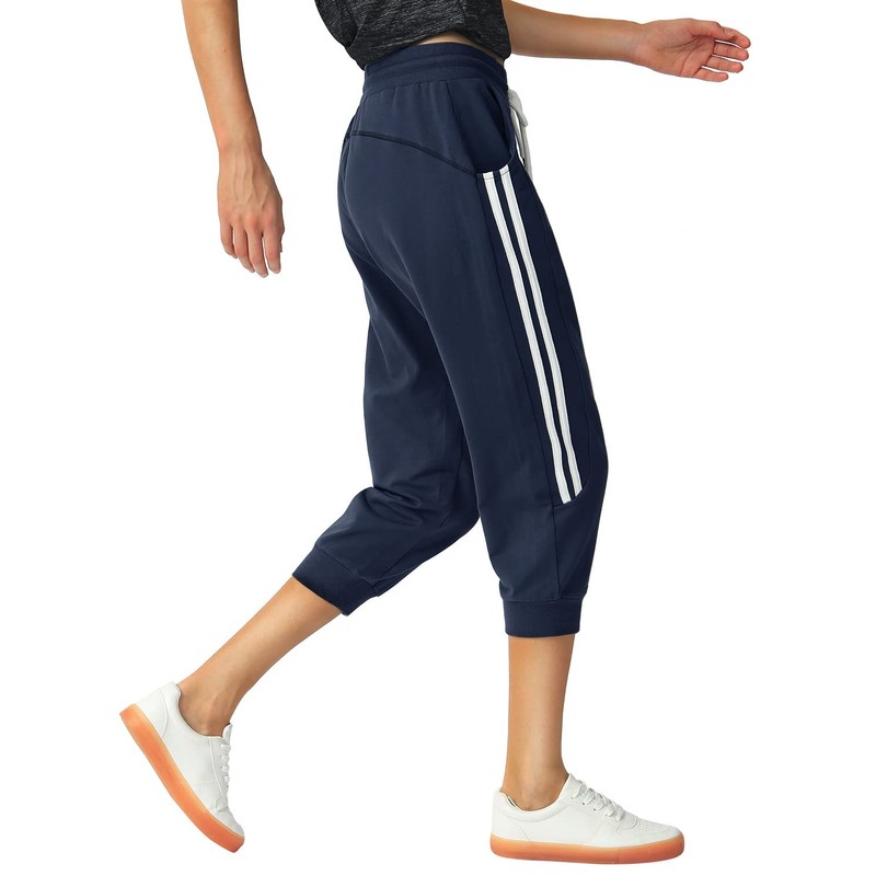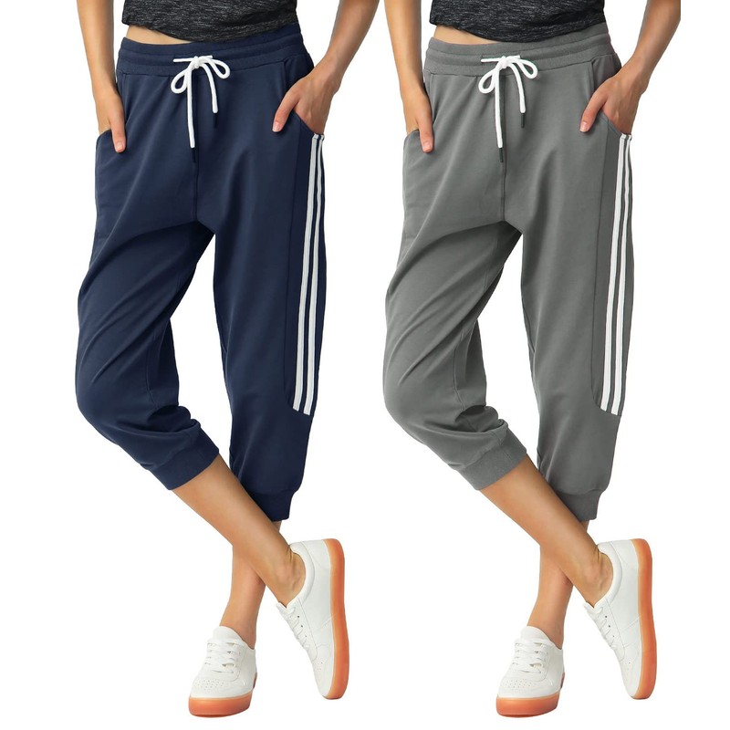 SPECIALMAGIC Women's 2 Pack Capri Pants Cropped Joggers with Pockets Capri Sweatpants Dark Grey+Navy Medium