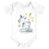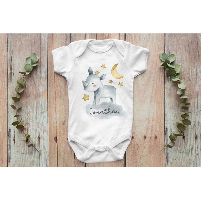SpecialMe® Baby Bodysuit with Name Print Animal Motifs Rhino Lion Elephant Watercolour Short Sleeve Organic Cotton, Safari Rhino White