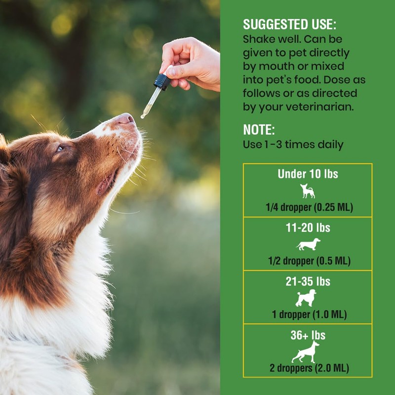 - Simple To Use: Our liquid formula makes it easy to give your pet daily. Just add to your dog's food or water based on our dosage chart on label.