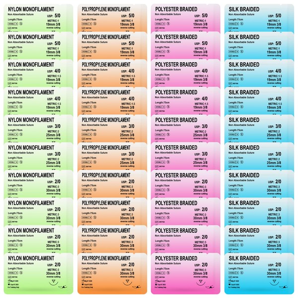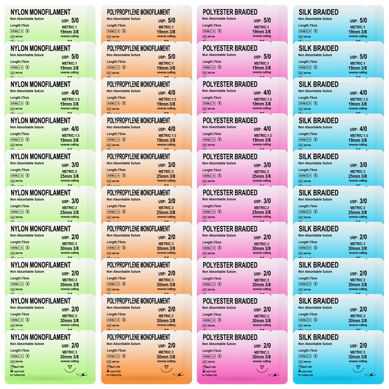 - ✅INCLUDE: Our product (4 non-absorbable threads) made of: nylon, polyester, polypropylene, and silk; (2/0, 3/0, 4/0, 5/0).40PCS
