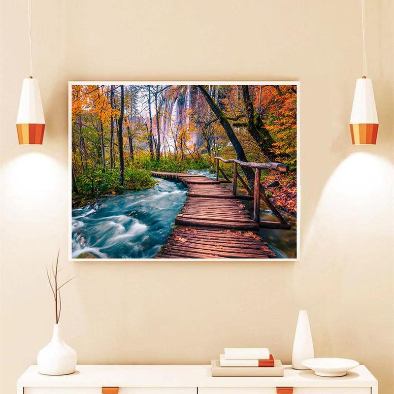 Spectacular Waterfalls Plitvice National Park Wooden Puzzles for Adults 1000 Piece Jigsaw Puzzles Popular touristic Wooden Bridge Puzzle 30"x 20"