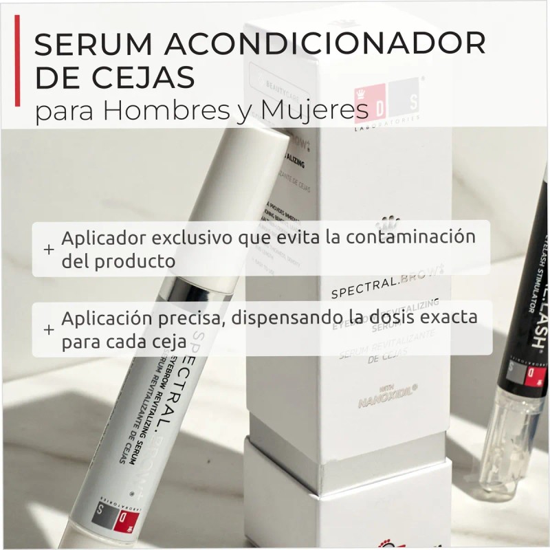 Spectral.Brow+® se distingue por su formulación de vanguardia, que combina ingredientes activos potentes con la exclusiva tecnología de nanosomas de DS Laboratories para maximizar la eficacia en el crecimiento y fortalecimiento de las cejas:
