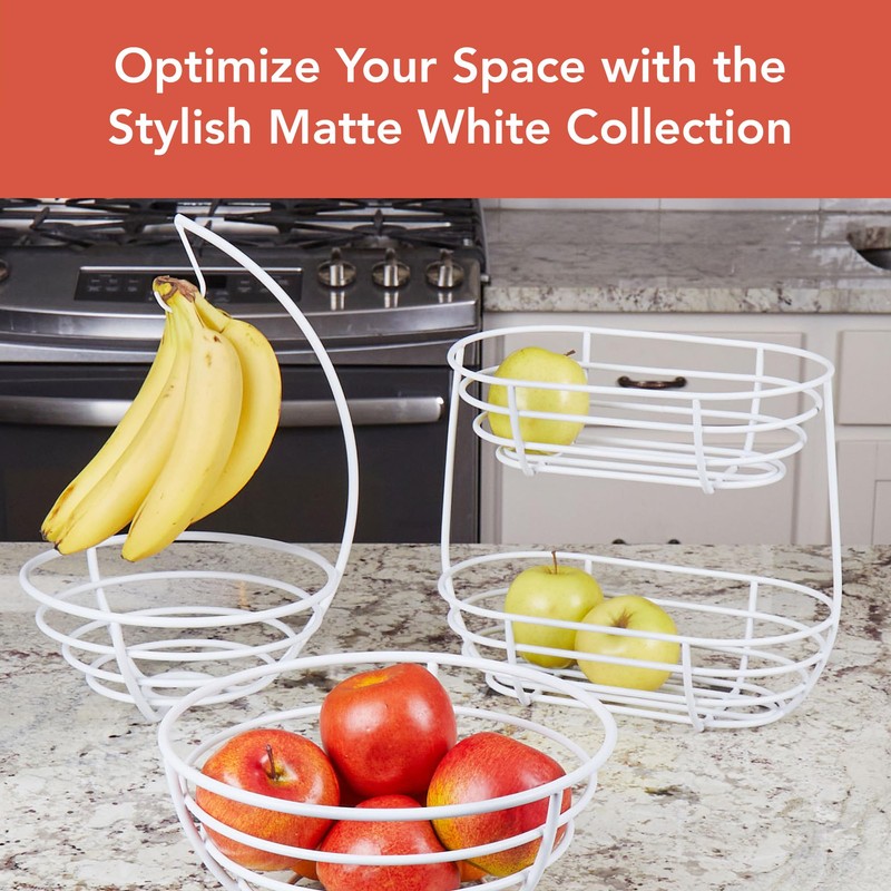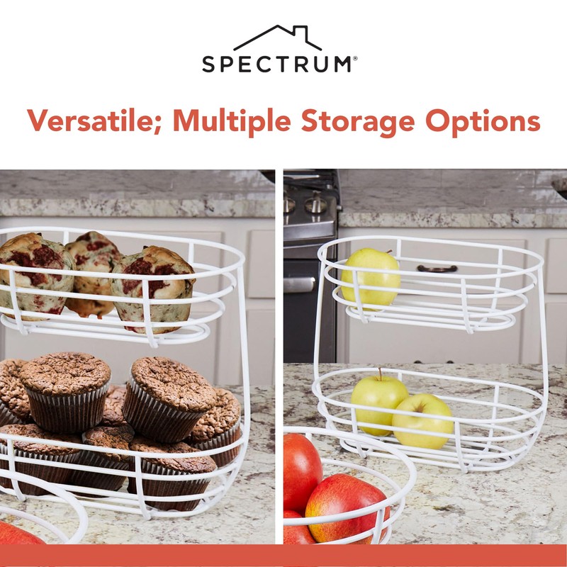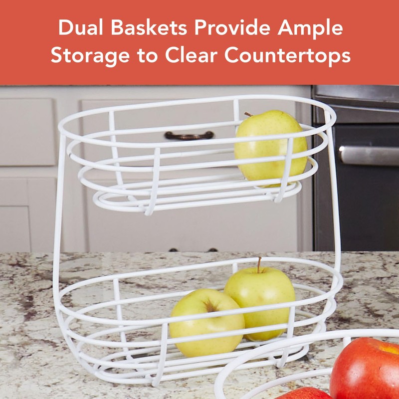 - Space Saving Design: With double the storage and half the space, this 2-Tier Fruit Basket provides an ample amount of storage.