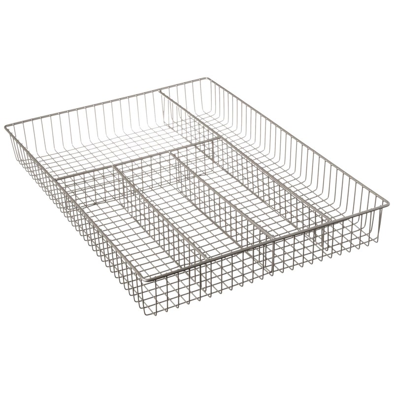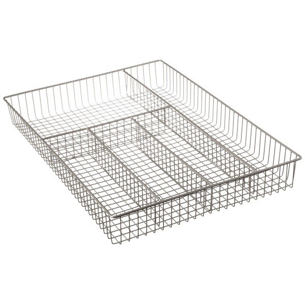 Keep silverware and kitchen utensils and gadgets organized with the Grid Large Flatware Tray from Spectrum Diversified. Straighten up kitchen drawers with this compact silverware tray. Keep cutlery in separate compartments to make it easy to grab a fork, spoon or knife. Never again lose your favorite bottle opener or corkscrew. This five-section tray is also great for organizing office supplies. This tray can be neatly placed inside a kitchen or office drawer, or pantry cupboard. Four compartments keep cutlery organized. Extra compartment along the bottom is perfect for additional kitchen accessories, such as a wine corkscrew, bottle opener, vegetable peeler, spatula or another kitchen utensil. Sturdy steel base sits evenly in kitchen drawers. The sturdy steel supports the weight of utensils, flatware, and cutlery. The base ensures weight is distributed evenly to eliminate tipping. Cross-wire design invites your farmhouse style into your kitchen. With clean lines and rustic finishes, the organizer adds a bit of style to your overall kitchen design scheme. Made of sturdy steel.
