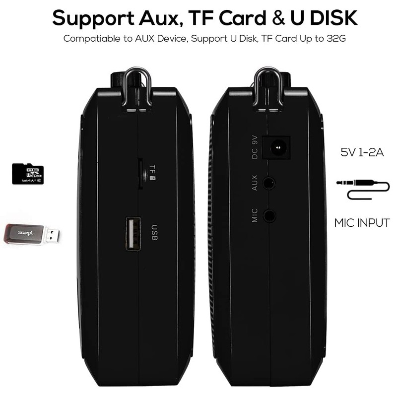 - 25 W voice amplifier: This is not only a beautiful voice amplifier that can project your voice clearly and loudly, but can also be used as a Bluetooth speaker. Supports recording, loop playback, AUX input, micro SD card and U disk.
