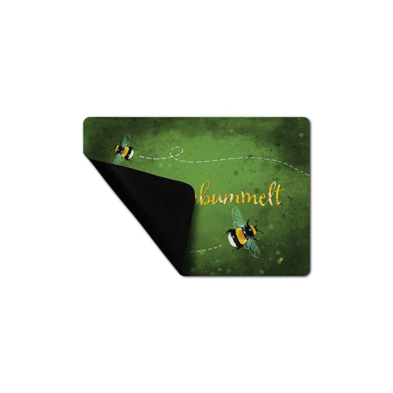 speecheese Hereingebummelt Hummel Doormat in 35 x 50 cm without Border in Green Door Mat for Spring House Entrance Patio Bumble Bee Cute