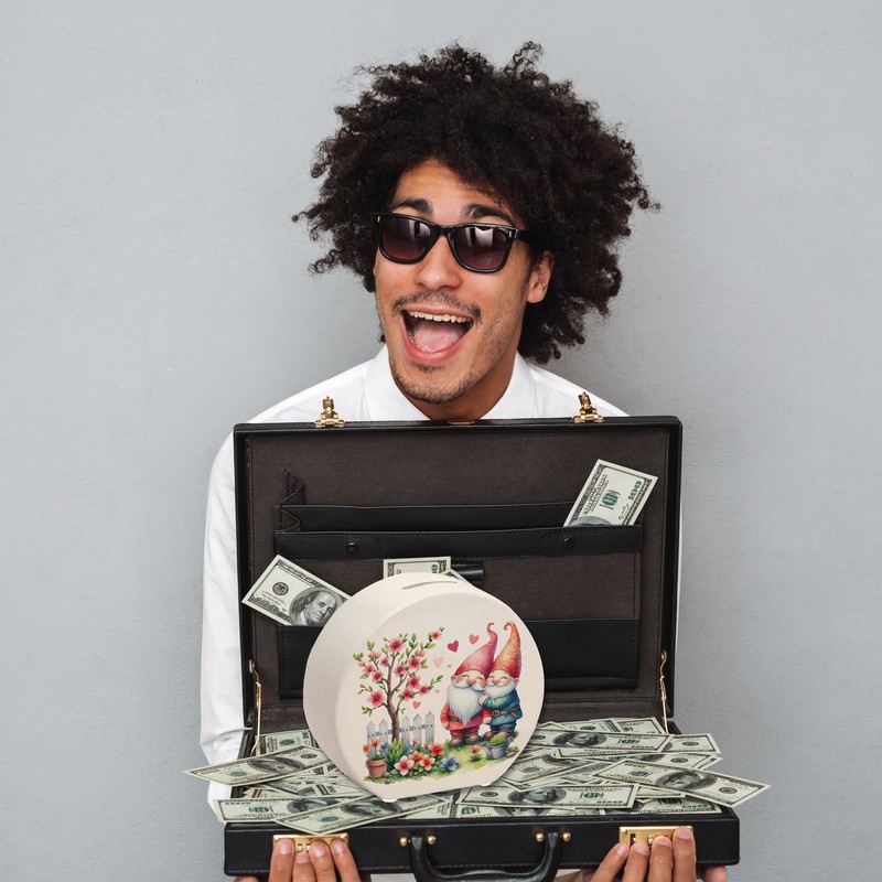 - Imagine how these gnomes in love collect your coins like sweet secrets. Every penny grows into a love story in your own green oasis. Practical and poetic - saves with heart, forgiveness with charm and decorated with soul!