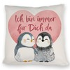 speecheese Penguin Pair Cushion with Saying Ich Bin Immer für Dich da für Partner Mama Liebe Zusammenhalt Valentinstag Freundschaft aus