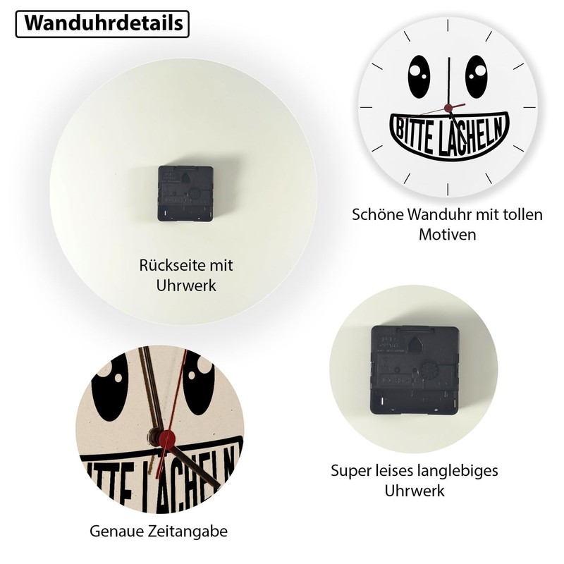 - Box contents: 1 x "Bitte smile" wall clock made of aluminium with grinning face