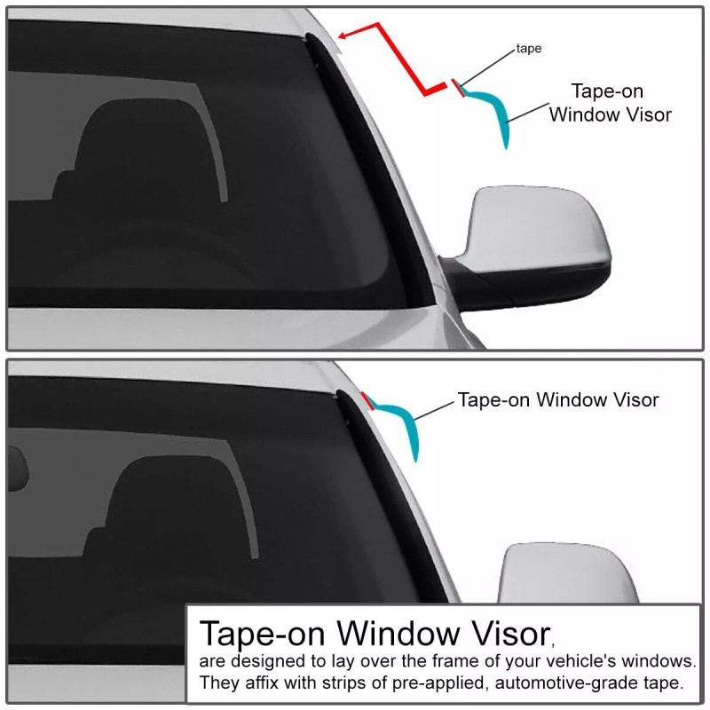 These side window visor deflectors have an aerodynamic design that redirects air past your window, keeping rain and airborne debris out, while keeping you comfortable. They also allow you to leave your windows cracked open to keep interior temperatures lower while obsuring vision of it to keep would be theives away. Made from high-impact acrylic, they install easily with 3M-brand approved tape.