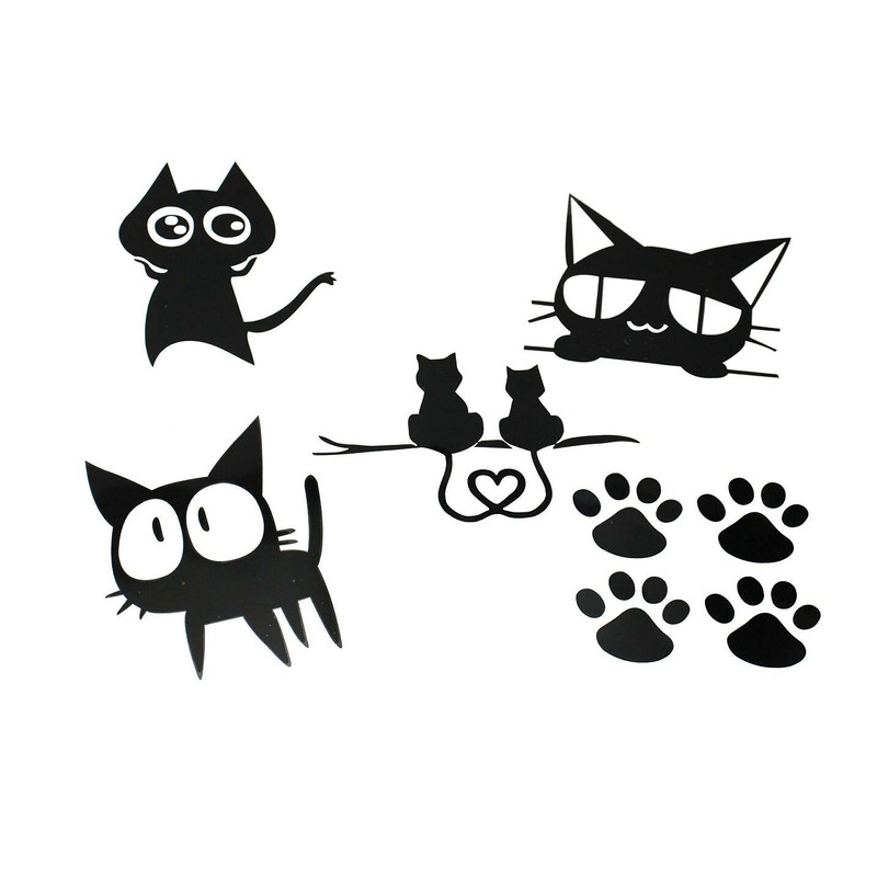 - Set of 5 large stickers for cute black cats. It also comes with a paw sticker for a cute arrangement