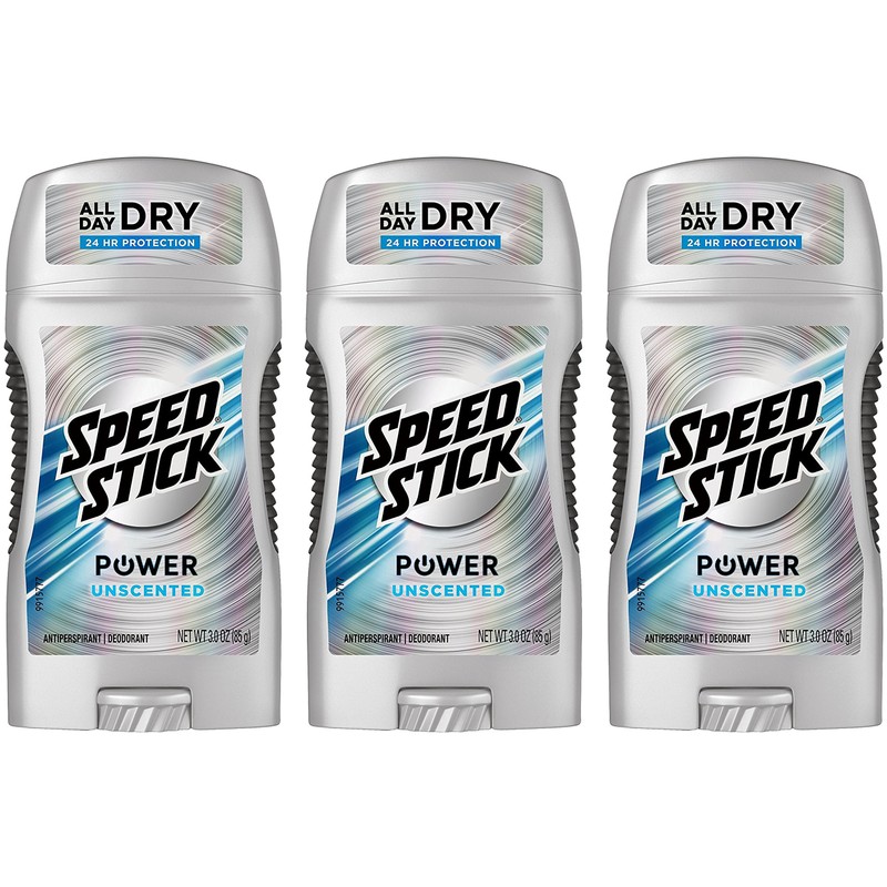 Speed Stick Antiperspirant / Deodorant For Men in Power Unscented (Net Wt. 3 OZ Per Stick). Pack of 3 Sticks Per Quantity Ordered (Total of 9 OZ). All Day Dry - 24 Hour Protection - Powder Solid Stick. *Product Packaging / Designs Vary*