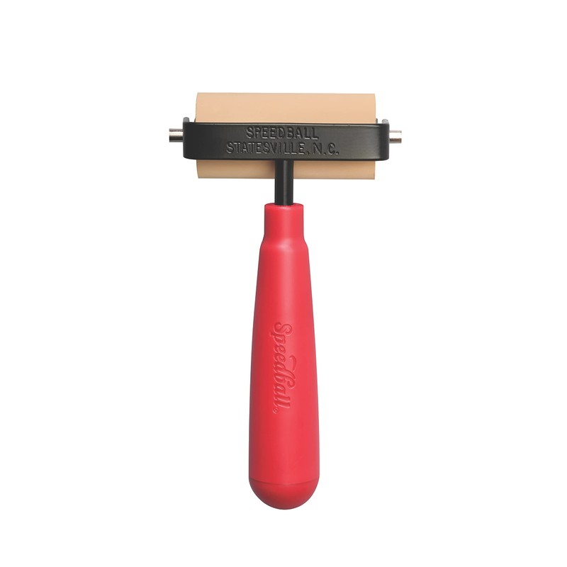 The Speedball Deluxe Soft Rubber Brayer is ideal for all types of block printing. Use it with your favorite water-soluble or oil-based block printing inks. It is made from soft, natural Latex gum rubber with a precision ground finish. The flexibility of the 40/42 durometer makes for even ink distribution. The brayer has a heavy duty steel frame that eliminates warping. It will not bend or break. This roller is ultra tough. The plastic handle on the rubber brayer is super comfortable and feels great in your hand. When you are done with your project you can clean the roller off with soap and warm water and wipe down with a paper towel or washcloth. The Speedball Deluxe Soft Rubber Brayer is proudly made in the USA and is a popular choice to use in school and at home.