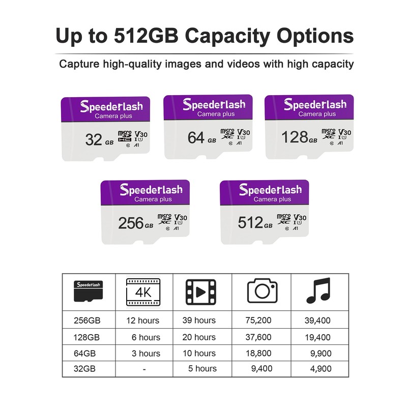 - Versatile Storage Options: Available in capacities from 32GB to 512GB, to diverse storage needs, from HD photos and videos to game data and apps. For instance, the 128GB model can store up to 6 hours of 4K video, 20 hours of 1080P video, 37,600 photos, or 19,440 songs.