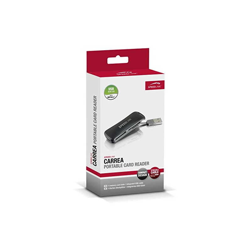 Speedlink 150001 Carrea Portable USB 2.0 Multi Card Reader – SD/MMC, MS (Memory Stick), M2, TF/Micro SD Slot – Black