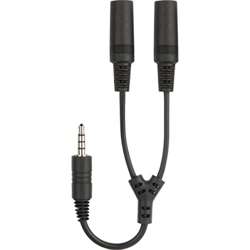 - 0.14 inch (3,5 mm) to 0.14 x 0.08 (2 inch) x 3,5 mm Headset Splitter for connecting 2 sets of Headsets and headphones to a portable audio device