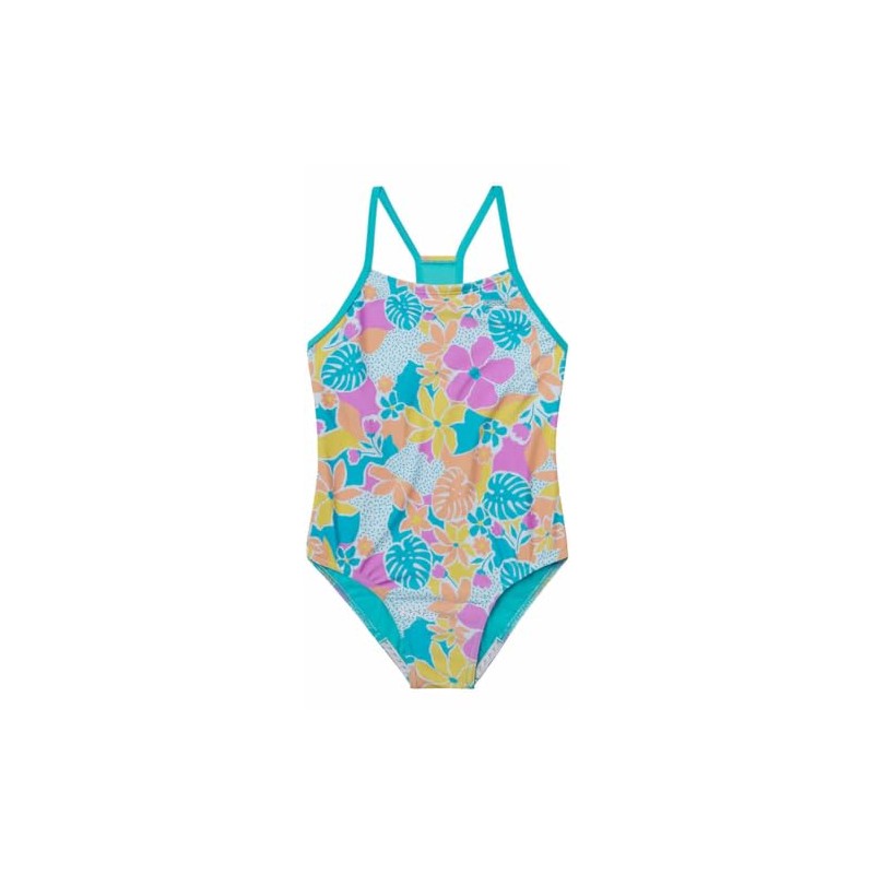 Speedo Girls Thin Strap One Piece Swimsuit (US, Alpha, Large, Regular, Floral Turkish Sea Blue)
