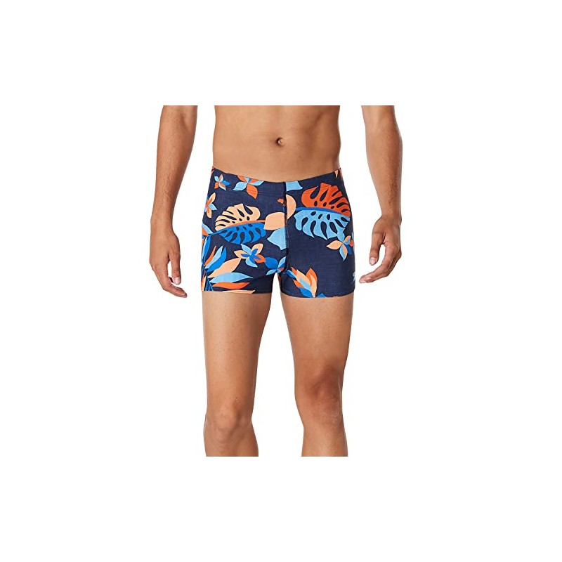 Speedo Men's Standard Swimsuit Square Leg Eco Flex Beachstar, Floatable Floral Peacoat, Small