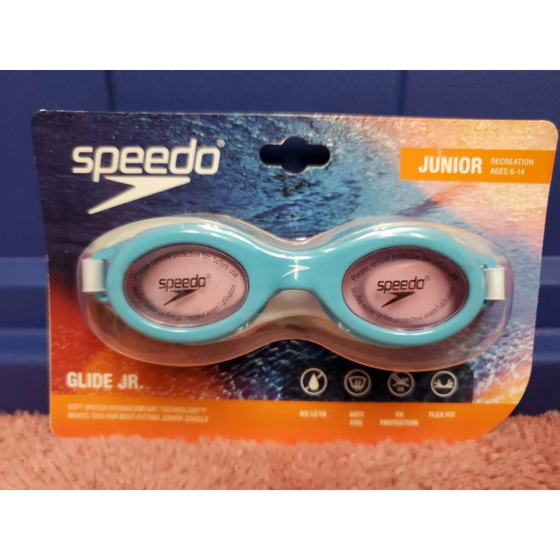 Speedo Swim Goggles Glide Jr Swim Goggles Junior Size Ages 6-14 Baby Blue NWT