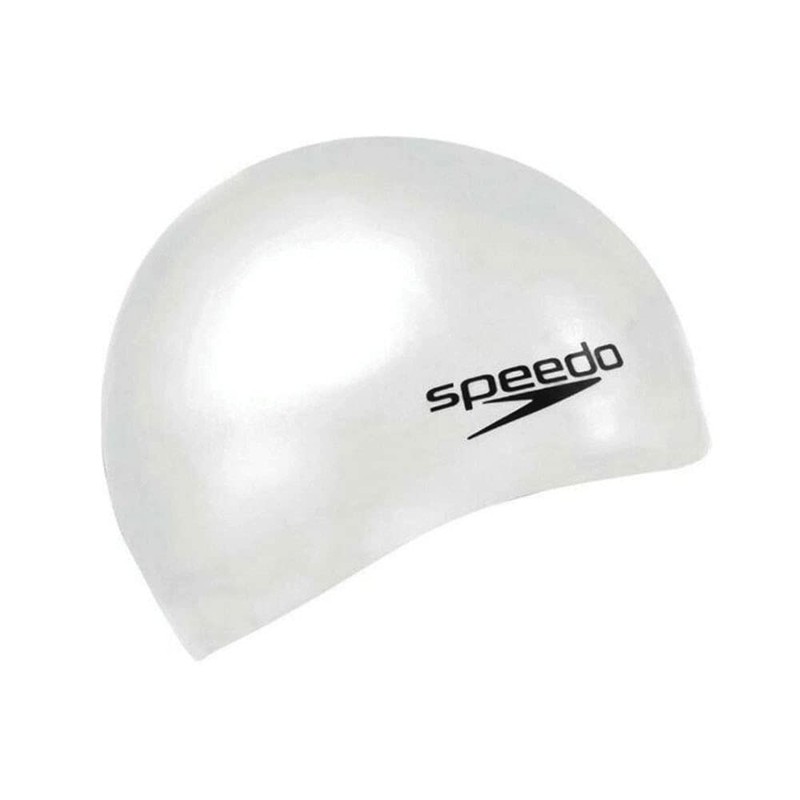 Speedo Unisex Flat Silicon Swim Cap | Hair Protect, White, One Size