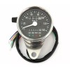 Universal chrome & black mini KMH speedometer with indicator lights and trip meter. Perfect speedometer for custom builds & cafe bikes. Clean minimalist look. 1400:60 speedometer ratio works with most all Japanese motorcycles including Honda, Kawasaki, Suzuki & Yamaha.