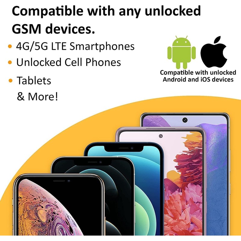 - UNIVERSAL COMPATIBILITY: Bring your own phone allows you to use any compatible cell phone on the SpeedTalk Mobile network. The Sim Card can be used to ACTIVATE ANY UNLOCKED 5G 4G LTE and VoLTE COMPATIBLE PHONE including iPhones, Androids Samsung Galaxy, Google Pixel, LG, Windows, and non-smartphones. Our Triple Cut Sim Card is designed in 3 different sizes (MINI/MICRO/NANO) to ensure that you can use it with a variety of devices. Just punch out the size that fits your device and insert it.