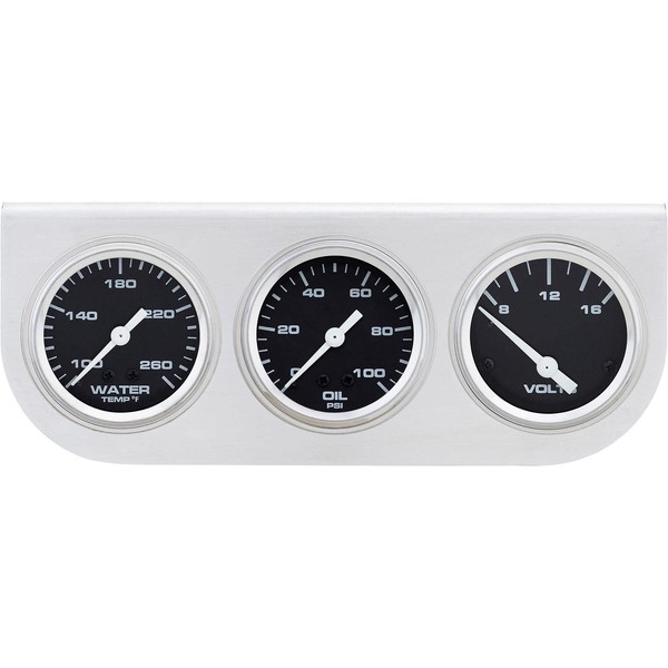 - Kit consists of a mechanical oil pressure gauge, a mechanical water temperature gauge, and an electric voltmeter gauge