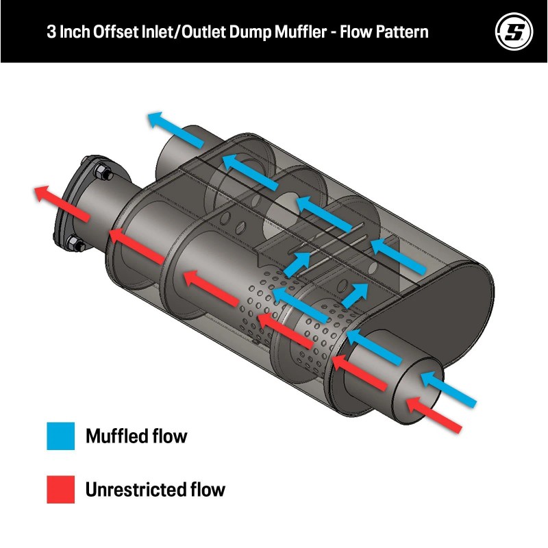 Speedway Motors 3-Inch Offset Inlet/Outlet Chambered Dump Muffler: Durable 16 Gauge Steel