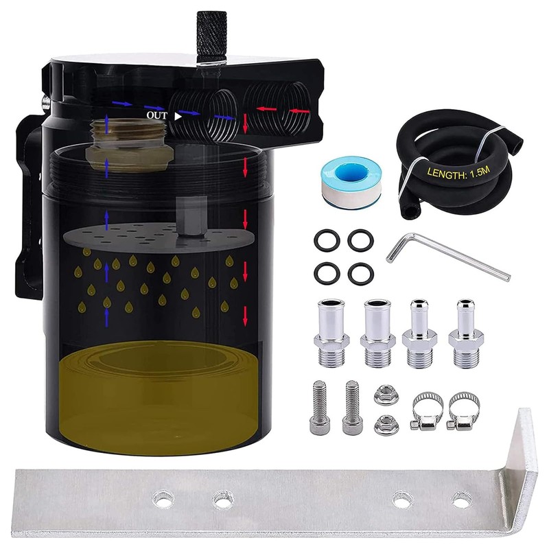 SPEEDWOW Universal Oil Catch Can Tank Filter Baffled With Hose Kit, 300ML(Black)