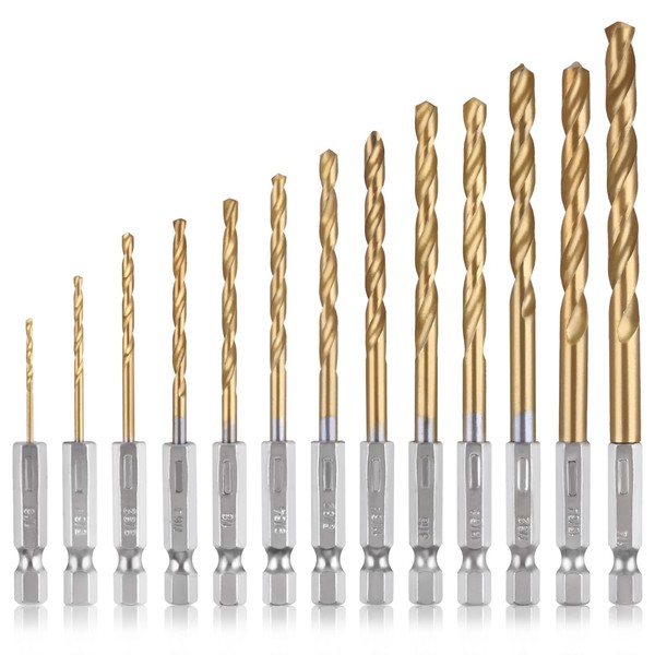 SPEEDWOX 13 Piece Drill Bit Set, For Woodworking, Hex Shank Drill Set, Hexagonal Drill Bit Set, Metal Drill Bit Set, Twist Drill Bit Set, Woodworking Drill Bit, Hex Axis, Ironwork Drill Set, Metal