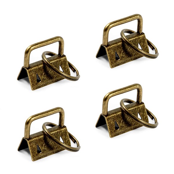 SPEEDWOX 25 Pcs Key Fob Hardware with Split Ring Webbing Antique Brass 1 Inch