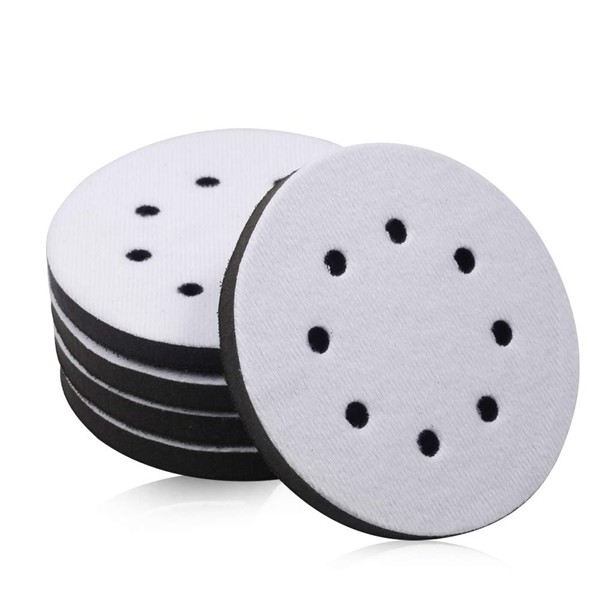 SPEEDWOX 5 Inch 8 Holes Hook and Loop Sanding Discs Pad 5 Packs Interface Buffer Cushion Soft Foam Buffering Pad Shank Backing Pad for Drill Grinder Rotary Tools