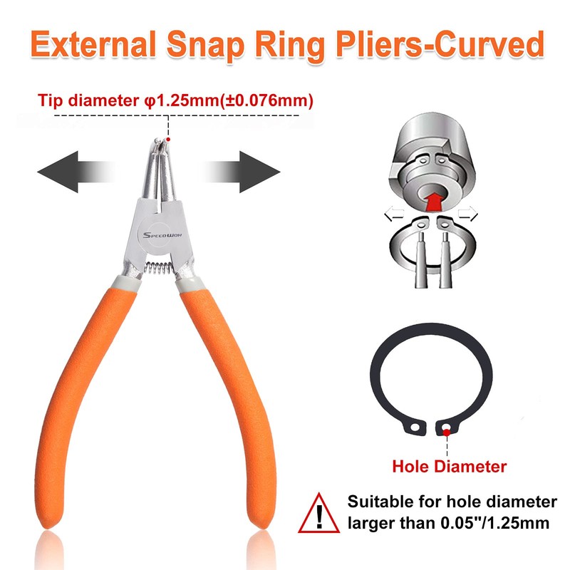 SPEEDWOX 6-Inch Circlip Pliers, Tip Diameter 1.25mm, External Snap Ring Pliers, Heavy Duty Retaining Ring Pliers, Curved Jaws for Ring Remover Retaining