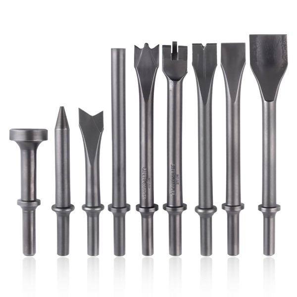- 【WIDE APPLICATION】These air hammer bits pneumatic chisels tools are widely used for masonry and concrete demolition, light chipping and chiseling of tile, mortar, crushing hard rock, chiseling and removing welding spots, rust, hardware cutting, drilling and so on.