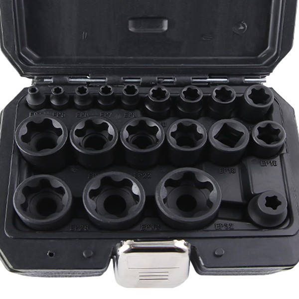 • 【WHAT YOU GET】6 point EP4, EP5, EP6, EP7, EP8 with 1/4" drive; 6 point EP10, EP11, EP12, EP14, EP16 with 3/8" drive; 6 point EP18, EP20, EP22, EP24, EP26, EP28, EP30, EP32 with 1/2" drive; and 5 point EP8.8 with 1/2" drive. Our set includes all the sizes needed for daily work.