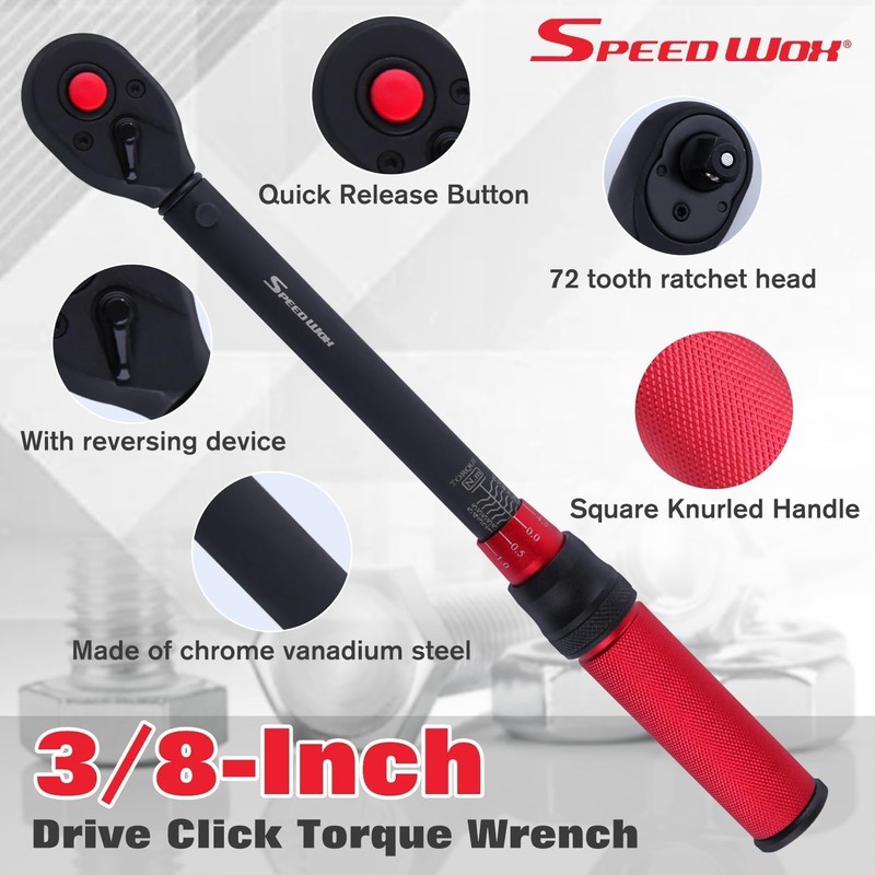 - Design: When the preset torque value is reached, the 3/8 drive torque wrench emits a sound "click" that encourages attention to stopping force and prevents excessive torque from breaking the item. The head of this professional torque wrench is equipped with a quick release button that allows you to quickly attach and detach the socket and secure it to prevent it from falling out